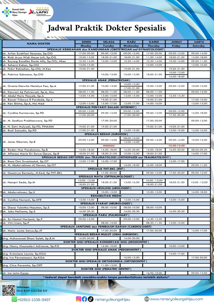 Jadwal Dokter RS Mary Cileungsi Hijau